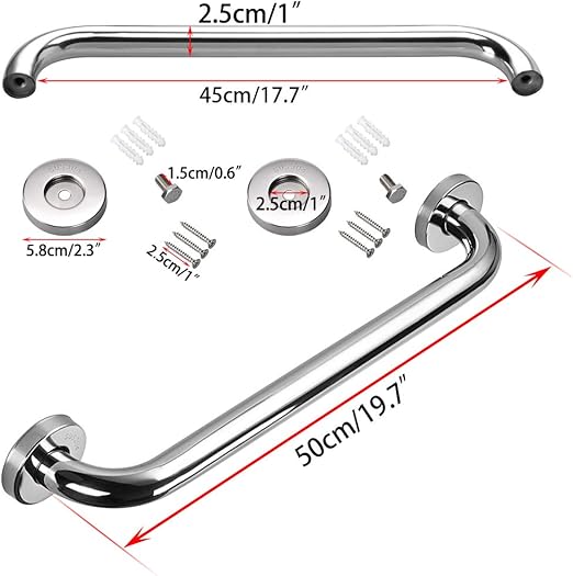 - Easy to Install – Our 19.7 inch grab bar featuring a convenient design, it come with the mounting screws for easy to install. The design allows for easy, secure installation at any angle. Installation is everything, so take your time and make sure you are going into a very solid surface to hold this on the wall.