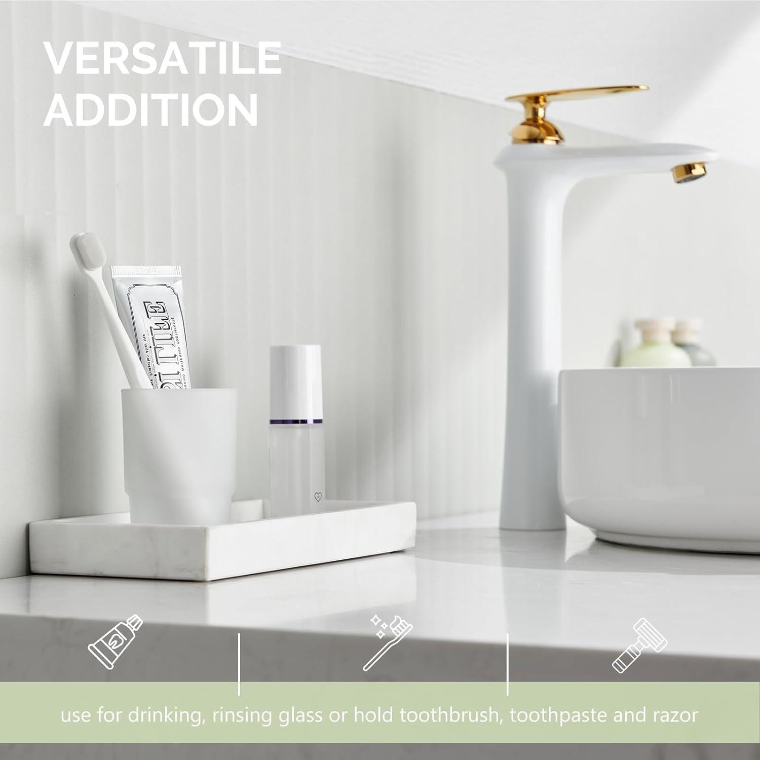 - SIMPLE AND CLASSIC GLASS: our tumbler cup is suitable for neatly holding items like electric toothbrush, toothpaste, razor, etc.