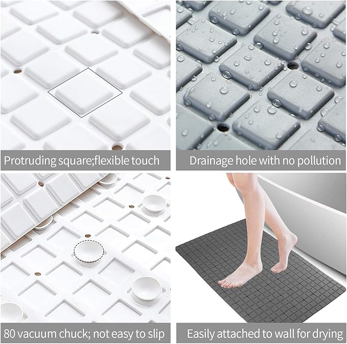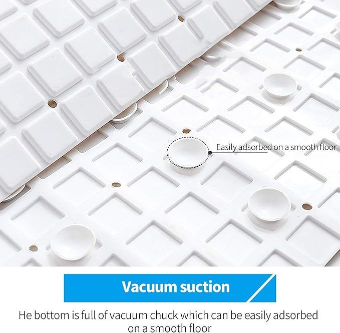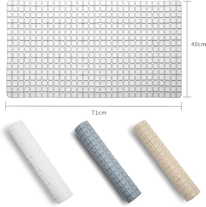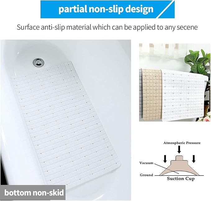 Bathlux Non-Slip Bath Mat Shower Rug PVC Mat Anti-Bacterial Massaging Mat with Vacuum Suction Cup for Bathroom, 35*78CM (White) UAE