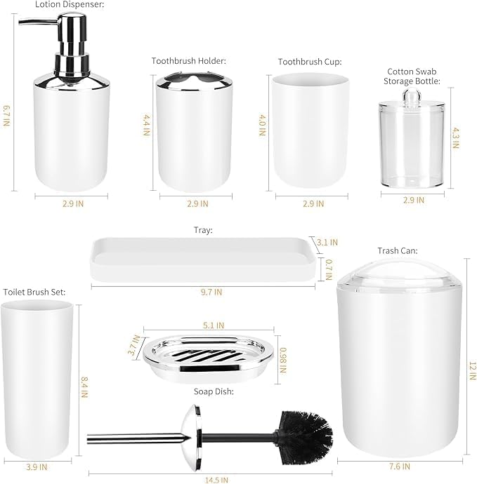 Bathroom Accessories Set, 9 Pieces Bathroom Accessory (white)
