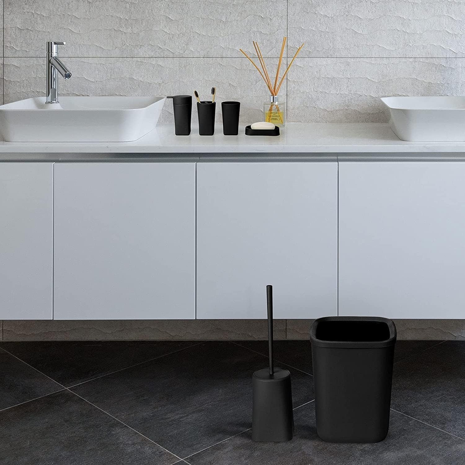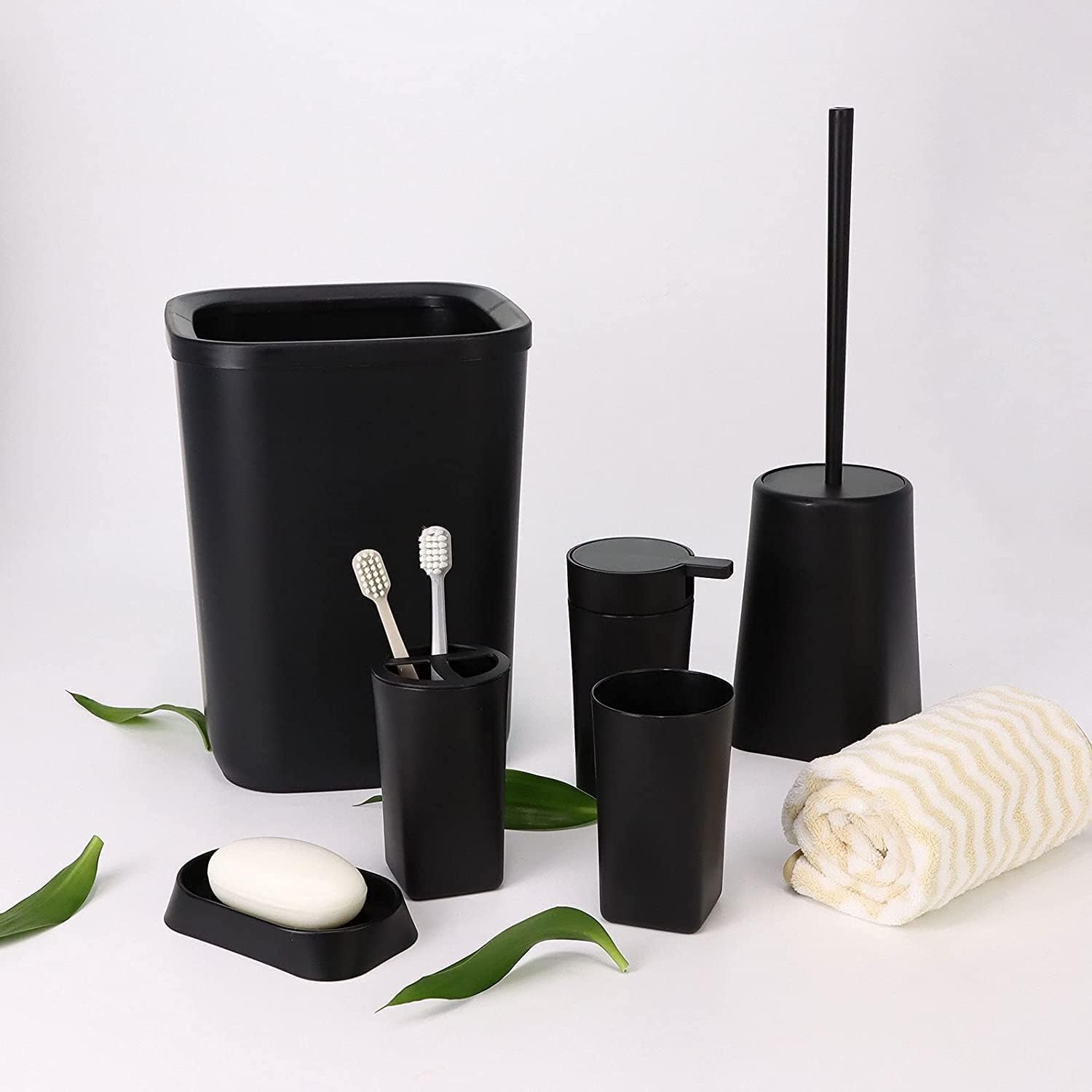 Bathroom Accessories Set,6-Piece Bathroom Gift Set (Black)