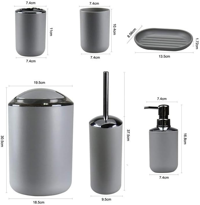 Upgrade your bathroom with this stylish 6 Pieces Grey Bathroom Accessories Set, designed to bring a clean, modern, and organized look to your space. The elegant grey color easily matches any bathroom interior, giving it a premium and sophisticated touch.