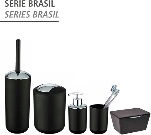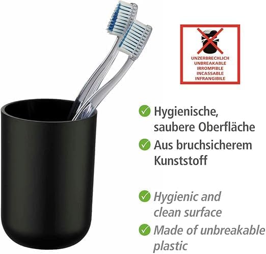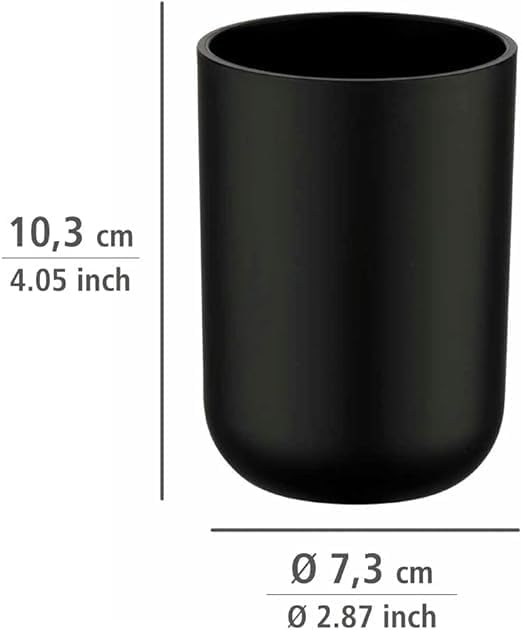 Elevate your bathroom aesthetics with this sophisticated Brasil Black toothbrush holder. Crafted from durable TPE plastic material, this tumbler combines style with practicality in a sleek matte black finish. The cylindrical design, measuring 7.3 x 10.3 x 7.3 centimetres, provides ample space for storing toothbrushes while maintaining a minimal footprint on your countertop. Its unbreakable construction ensures longevity, making it a reliable addition to your daily routine. The smooth, modern silhouette complements contemporary bathroom décor, while the deep black colour adds a touch of sophistication. The holder’s sturdy base prevents tipping, and its seamless interior makes cleaning effortless. Perfect for both family bathrooms and en-suites, this toothbrush tumbler offers a blend of functionality and modern design that will enhance your bathroom organisation.