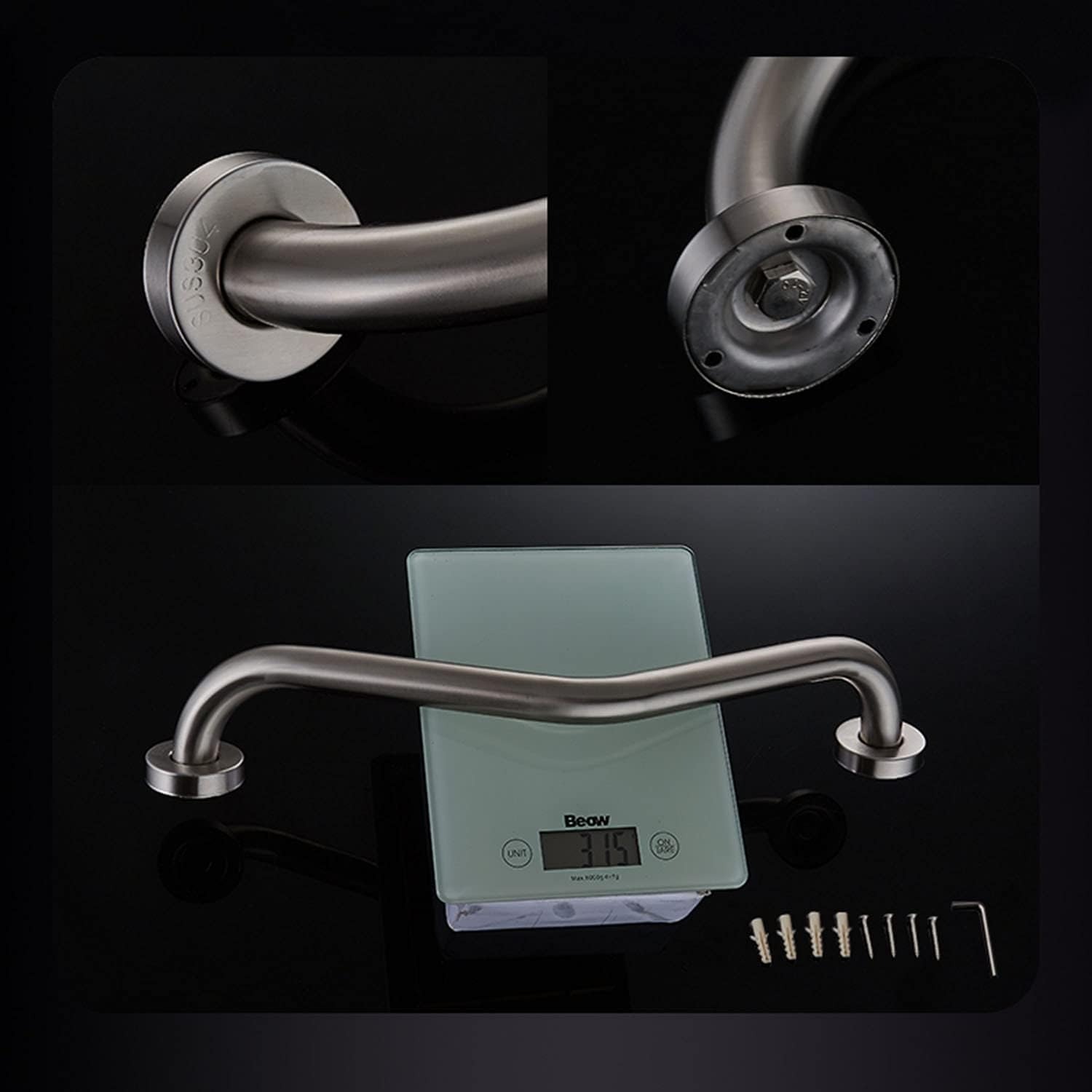 Heavy duty stainless steel handrail is safe, strong and durable. The handrail can be better gripped and avoid falling off when bathing. Provides a stable and reliable handle. Add more security to your family, suitable for any wall installation, our handrail can be safely supported, perfect for bathrooms, kitchens, showers, toilets, hotels, etc.