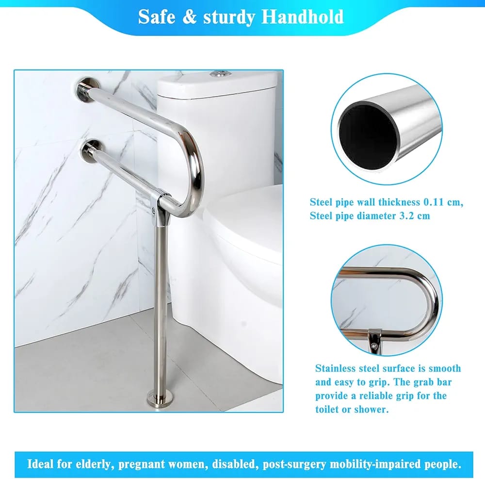 - 【Great Bathroom Toilet Support】 T-shaped handicap rails is mounts to wall and floor design, to help user keep balance in the bathroom.