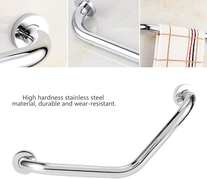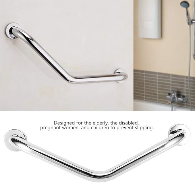 Upgrade your bathroom safety with our premium Silver Angle Grab Bar. Made from high-quality stainless steel, this strong and durable support handle is designed to provide extra stability and balance in bathrooms, showers, and toilets.