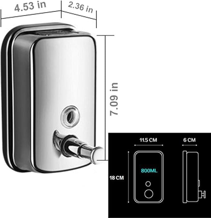 Elevate your space with this sophisticated stainless steel soap dispenser, crafted from premium SUS304 material for lasting durability. The wall-mounted design saves valuable counter space while adding a touch of modern elegance to any bathroom or kitchen. With a generous 800ml capacity, this manual pump dispenser requires less frequent refilling, making it ideal for both commercial and residential settings. The press-type mechanism delivers a consistent amount of soap or sanitiser with each use, ensuring efficient dispensing without waste. Installation is straightforward with the included mounting bracket, screws, and wall anchors. The sleek, chrome-finished exterior not only complements any décor but is also easy to clean and maintain. Perfect for hotels, offices, restaurants, or home use, this dispenser combines practicality with style. The large capacity and reliable mechanism make it an excellent choice for high-traffic areas where dependable performance is essential.