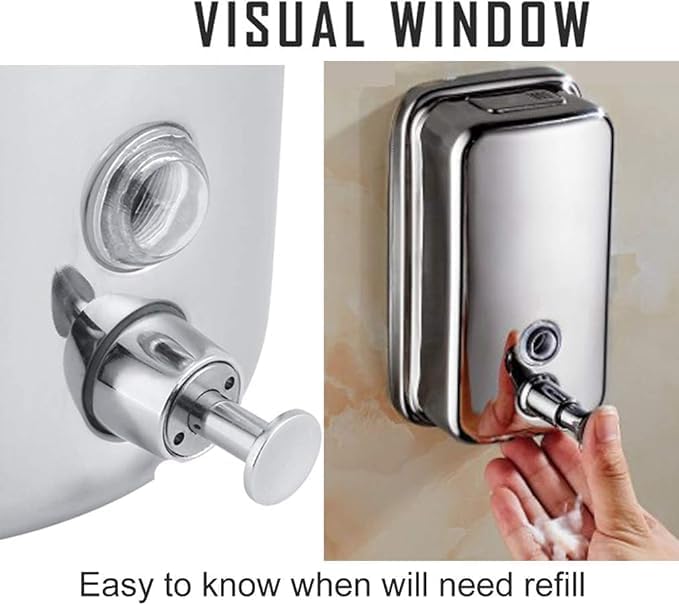 Stainless Steel Manual Soap Dispenser, Wall-Mounted, 800ml Capacity, Commercial and Home Use