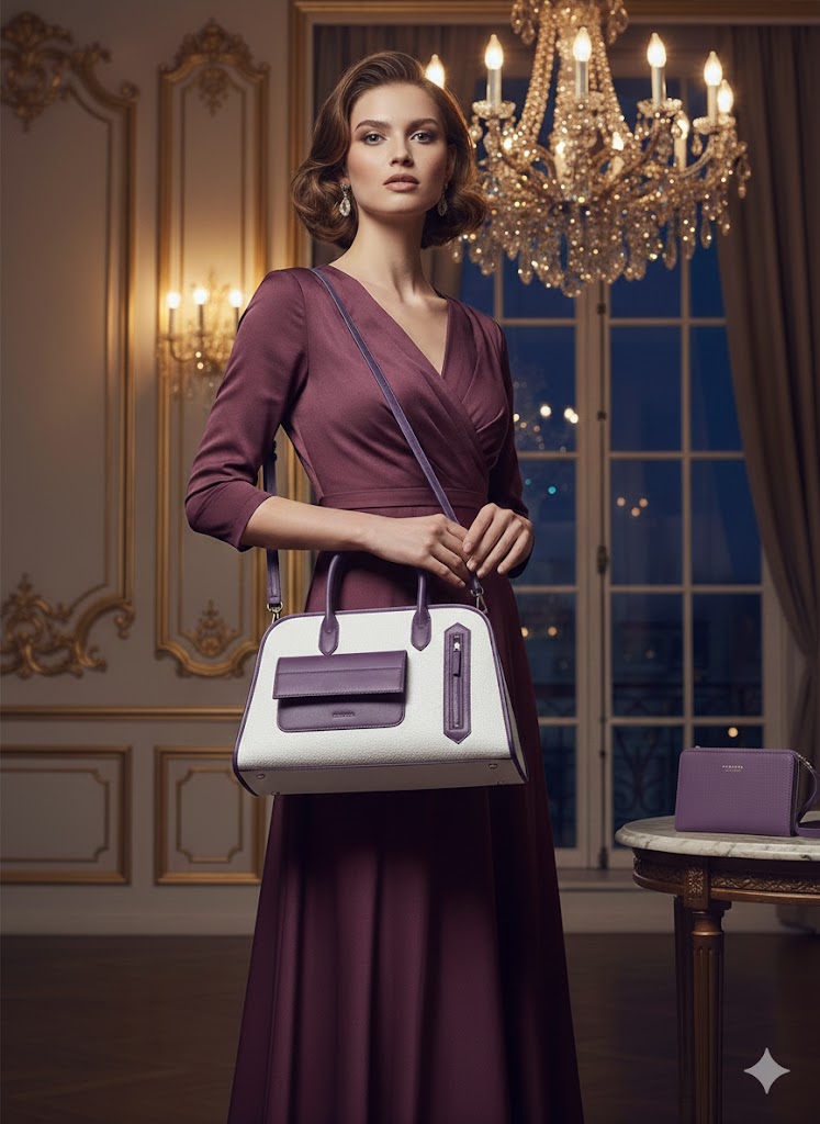 Description: Elevate your accessory collection with the VERNIKA PD2421, a sophisticated satchel designed for the modern professional. This handbag features a striking two-tone design with a rich, woven-textured body contrasted by smooth premium accents.