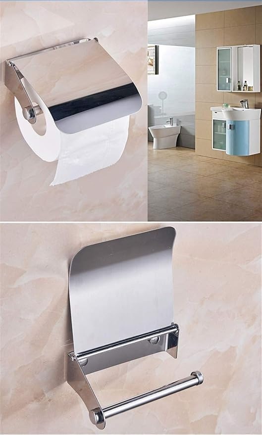 Wall-Mounted Toilet Paper Holder, Stainless Steel with cover